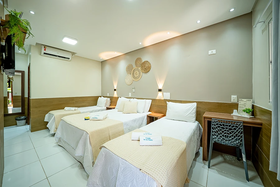 O Quarto Família é o maior e mais espaçoso da nossa pousada, ideal para criar memórias inesquecíveis com seus entes queridos. Este amplo ambiente oferece o máximo em conforto e liberdade, perfeito para famílias que buscam uma estadia confortável e acolhedora.
