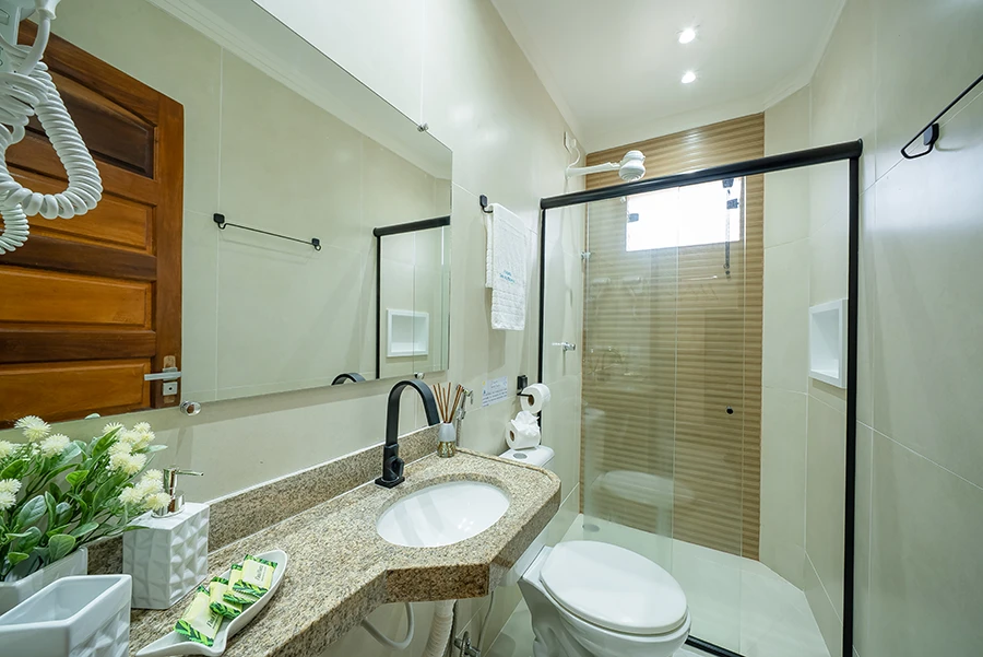 Experimente o máximo de conforto e bem-estar no nosso Triplo superior com varanda. Perfeito para famílias ou amigos, este quarto conta com uma cama de casal e uma de solteiro, ar-condicionado, TV LED e frigobar. Desfrute de uma varanda privativa para momentos relaxantes e aproveite o ambiente acolhedor e moderno que transforma sua estadia em Porto de Galinhas em uma experiência inesquecível.